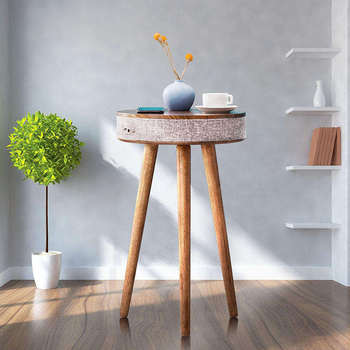 Fonksiyonel mobilya ceviz Modern yan masa kolay montaj Modern oturma odası sehpalar Bluetooth hoparlör